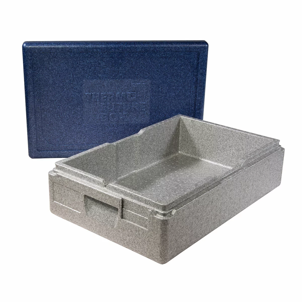 Unsere praktische Thermo Future Box GN 1/1 Premium in grau/blau hat Eingriffmulden an den Längsseiten. Diese bieten ausreichend Platz für die Entnahme heißer, schwerer GN-Behälter. Die äußerlichen handlichen Griffmulden, der dichtschließende Deckel und Markierungsfelder für das Label-System runden diese Box ab.